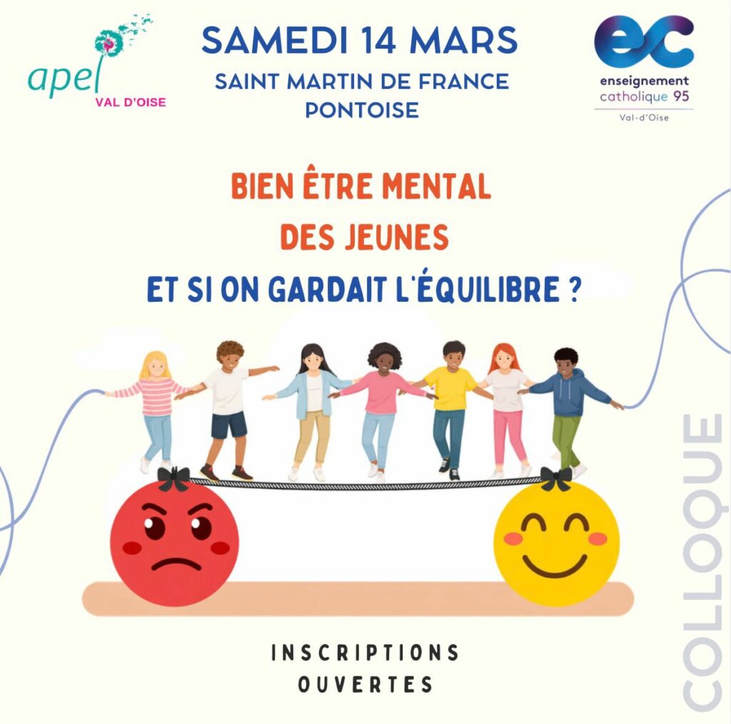 L’Enseignement catholique du Val d’Oise et l’APEL Val d’Oise vous invitent à une journée de réflexion et d’action autour du bien-être mental des jeunes.